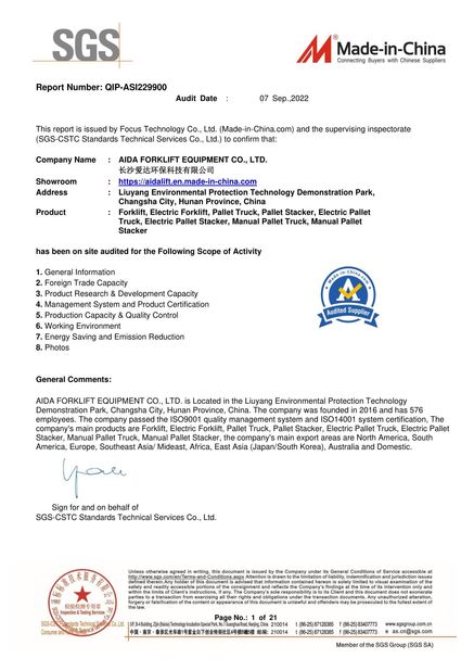 AIDA ได้จัดตั้งระบบประกันคุณภาพอย่างเข้มงวด และผ่านการรับรอง ISO9001, ISO14001, SGS และ CE